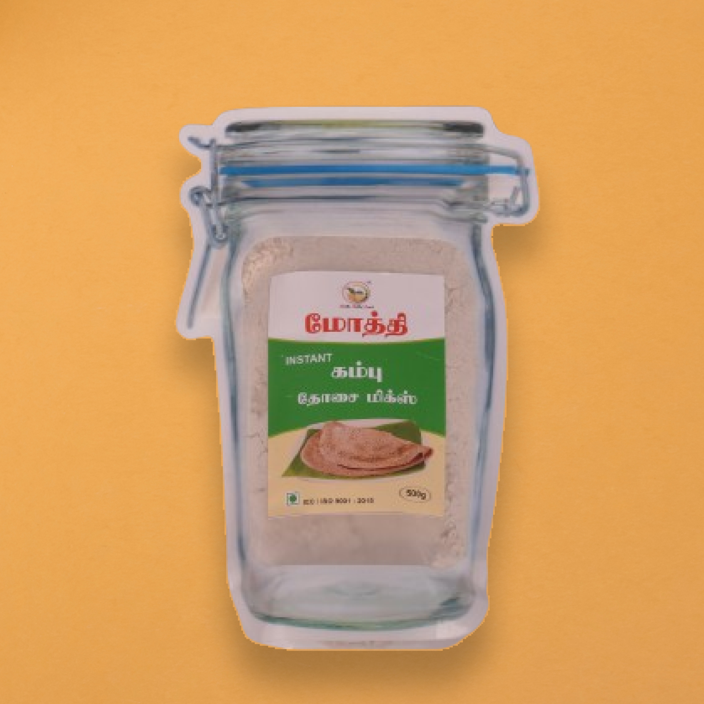 Discover the delightful taste of our Kambu Dosa Mix, also known as Kambu Dosa Maavu. This nutritious millet dosa blend is crafted from high-quality kambu (pearl millet), offering a gluten-free and fiber-rich alternative to traditional dosa. Perfect for making delicious millet dosa, our dosa mix is convenient and easy to prepare, allowing you to enjoy healthy, flavorful meals in no time. Elevate your cooking with this wholesome mix, ideal for health-conscious individuals seeking nutritious options!